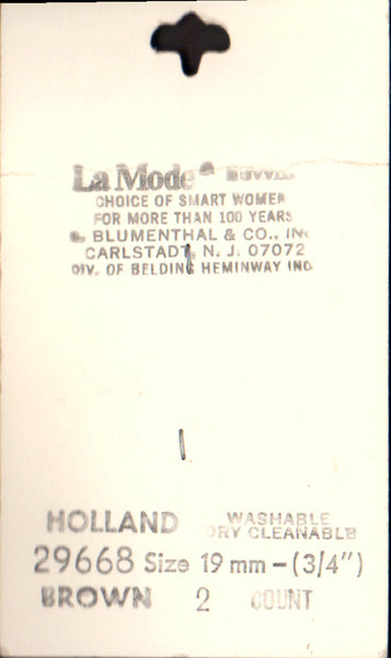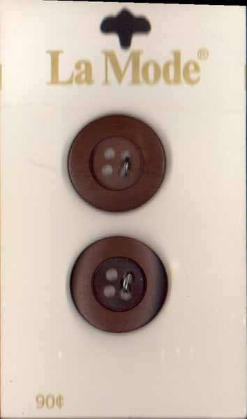 Vintage La Mode 19 mm (3/4 inch) Carded Brown 4-Hole Buttons Two Pieces