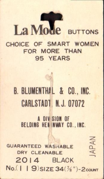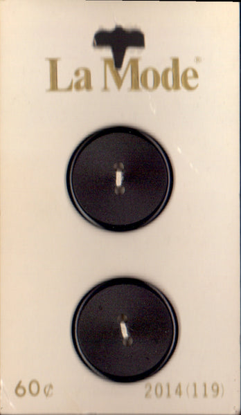 Vintage La Mode 22 mm (7/8 inch) Carded Black 2-Hole Buttons Two Pieces