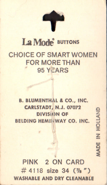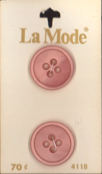 Vintage La Mode 22 mm (7/8 inch) Carded Pink 4-Hole Buttons Two Pieces