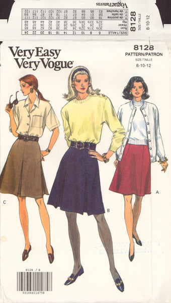 Vogue 8128 Sewing Pattern, Skirt, Size 8-10-12, Uncut, Factory Folded