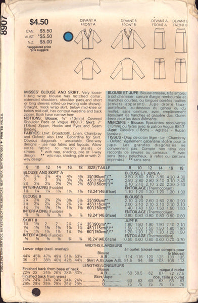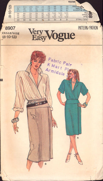 Vogue 8907 Blouse and Skirt, Sewing Pattern, Size 8-10-12, Uncut, Factory Folded OR Cut, Complete