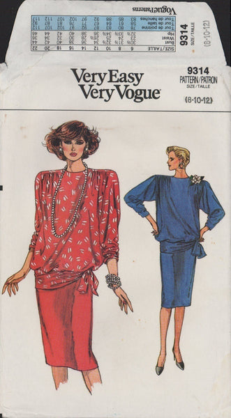 Vogue 9314 Sewing Pattern, Top and Skirt, Size 8-10-12, Uncut, Factory Folded OR Cut, INCOMPLETE