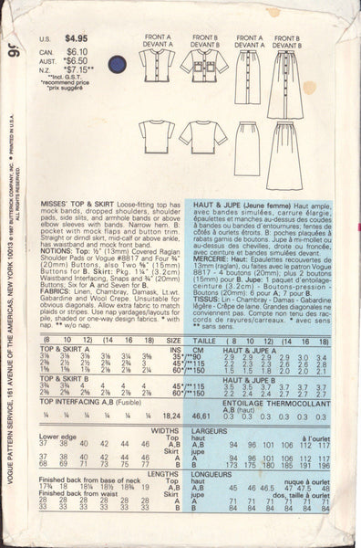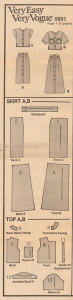 Vogue 9901 Sewing Pattern, Women's Top and Skirt, Size 8-10-12, CUT, INCOMPLETE